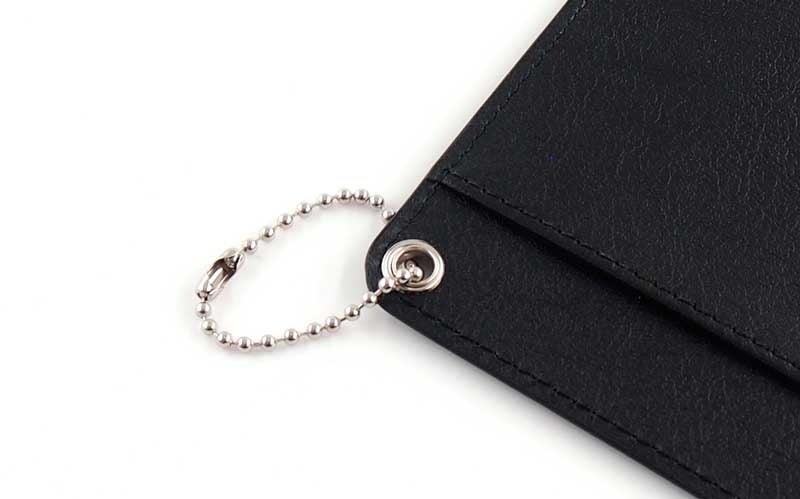 オリジナル2ポケットパスケース本体にはストラップなどの取り付けが可能なボールチェーンも無料オプションとしてお付けしております。