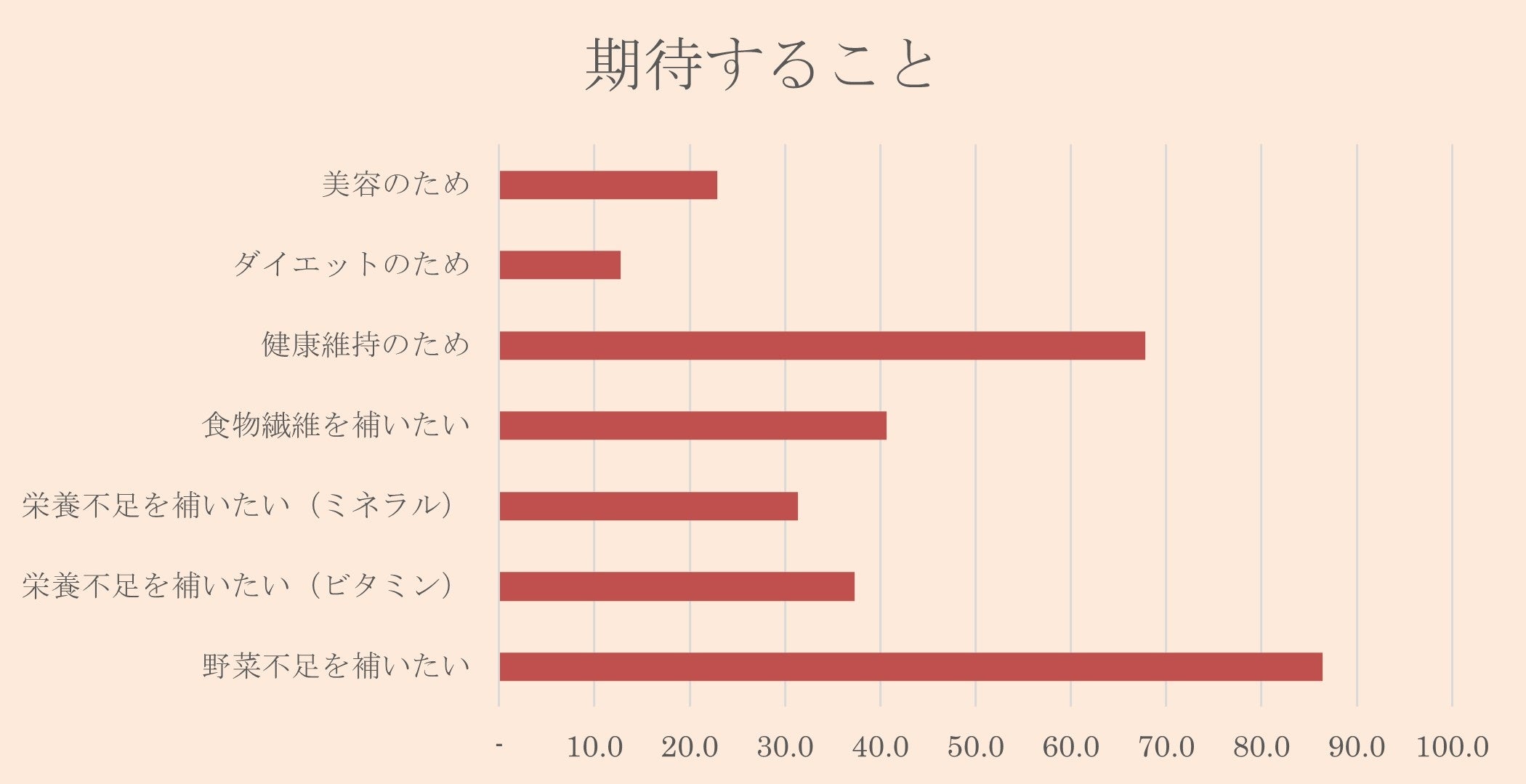 また、同調査では野菜を食べる理由として、純粋に「野菜が好き」や「美味しい」から食べている人が約半数という調査結果も。野菜が苦手で食べられないから青汁で補うというよりも、野菜感を感じられるものが好まれるのではないかと考えました。