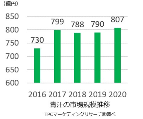 コロナ禍による巣ごもり生活が続き、セルフケアの意識の向上や、日々健やかに過ごすことができるカラダ作りのための商品の需要が増えていることから、2023年1000億円に達すると言われるほど青汁市場は伸びています。