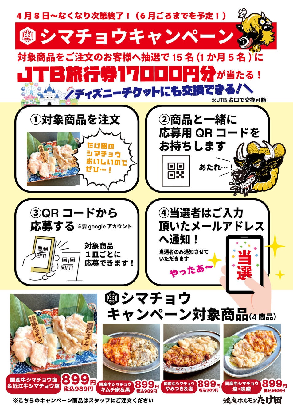 “超”が止まらない!?「シマチョウ食べ比べ大会」開催中!ディズニーペアチケットが当たるチャンスも!