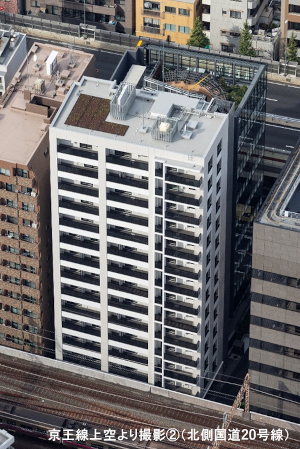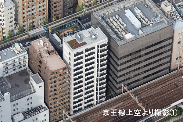 本事業の立地は、国道20号(甲州街道)と京王線高架に面しており、京王線笹塚駅徒歩2分の商業地域に所在することから、利便性に大変優れております。 従前は、都市部に多い複雑な権利関係を有した土地建物が存し、そこには権利者様のご自宅や賃貸物件があり、賃貸物件は利便性の高さから入居率の高いものでした。しかしながら、権利者様間で経年建物の将来懸念から建替えの意向が高まり、結果として、権利関係を整理することができ、土地との縁も継続することができる等価交換の手法を採用することとなりました。都市共同化(等価交換)することで、従前建物よりさらに高度利用をし、商業地域のメリットを最大限に活かした新築マンションが完成しました。