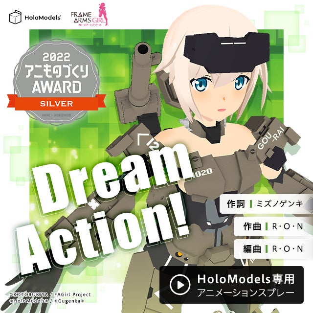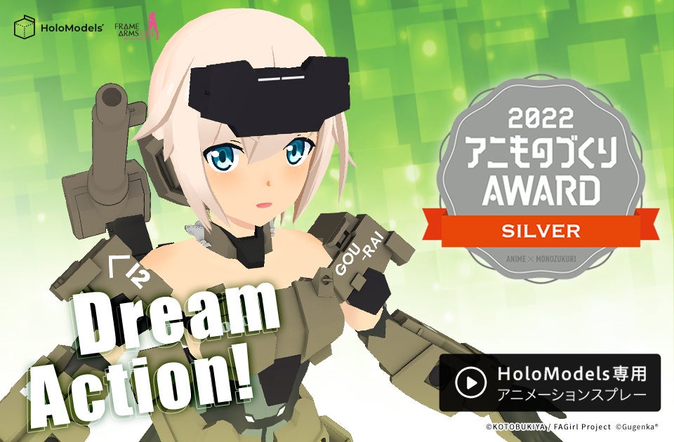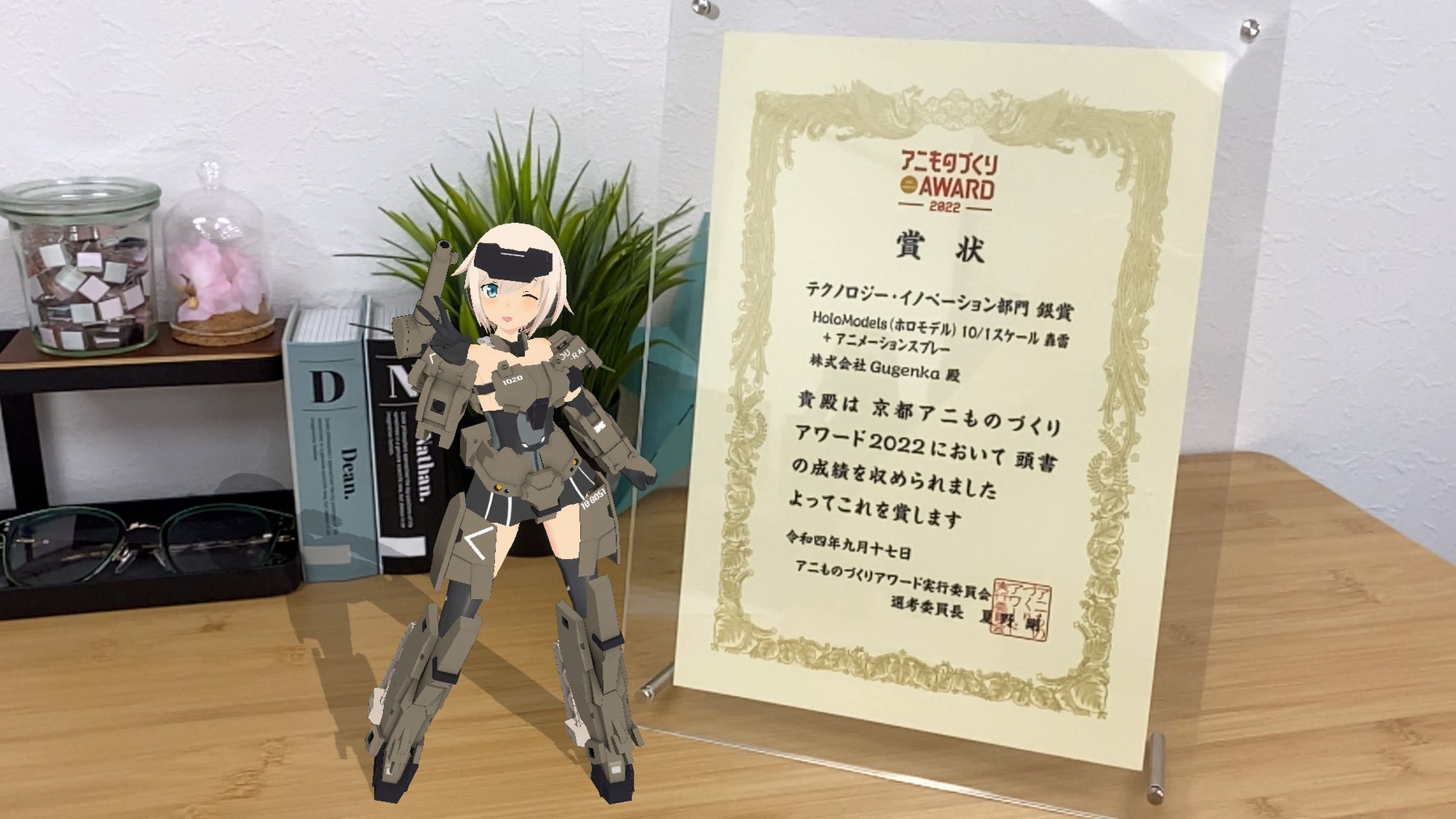 株式会社Gugenka(代表取締役CEO 三上昌史)とホビーメーカー株式会社壽屋(代表取締役社長 清水一行)による両社協業で展開する、デジタルフィギュアHoloModels(ホロモデル) 10/1スケール 轟雷 + アニメーションスプレーが、2022年9月17日(土)に、京都アニものづくりAWARD 2022のテクノロジー・イノベーション部門で「銀賞」を受賞いたしました。