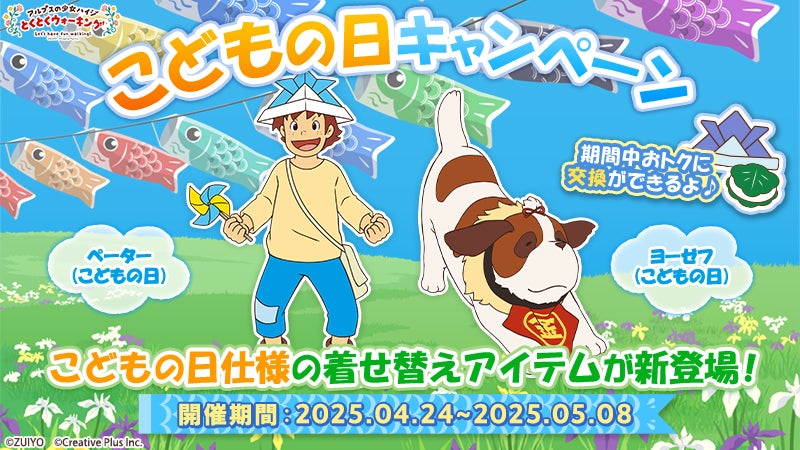 株式会社エムアップホールディングス(所在地:東京都渋谷区、代表取締役:美藤 宏一郎)の連結子会社であり、キャラクターやアニメIPを活用したコンテンツ配信やコラボ実施を手掛ける株式会社 Creative Plus(所在地:東京都渋谷区、代表取締役:加藤 周太郎)は、今年放映50周年を迎えた『アルプスの少女ハイジ(以下、「ハイジ」)』のポイ活アプリ『アルプスの少女ハイジ とくとくウォーキング』(以下、本アプリ)において、「こどもの日キャンペーン」を開始しましたので、下記の通りお知らせいたします。