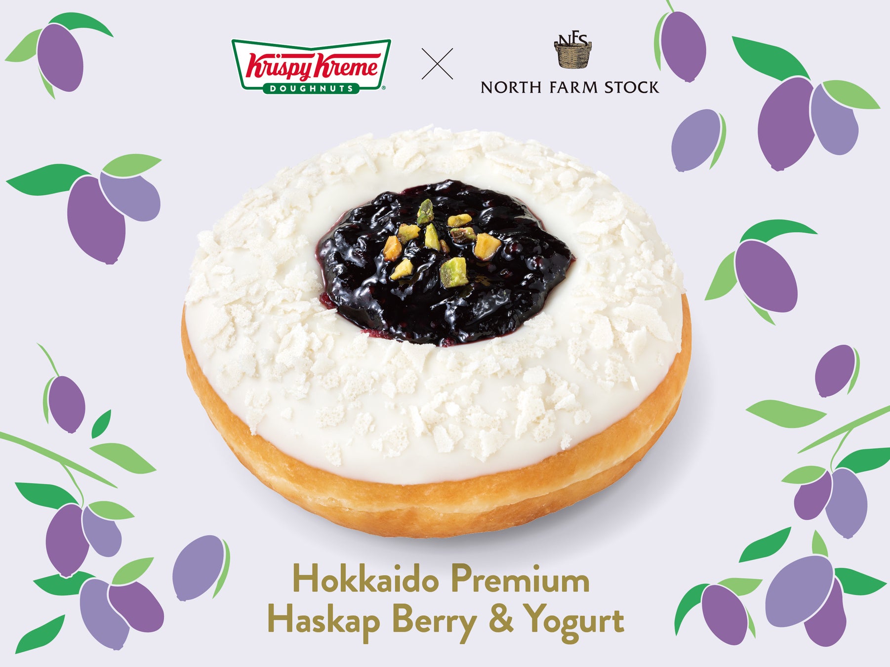 クリスピー・クリーム・ドーナツ・ジャパン株式会社(本社:東京都渋谷区、代表取締役社長:若月 貴子、以下:KKDJ)は、札幌ポールタウン店、札幌ル・トロワ店、千歳アウトレットモール・レラ店の3店舗にて、2022年7月27日(水)から9月30日(金)までの期間限定で『北海道プレミアム ハスカップ&ヨーグルト』を販売します。また、期間中の土日祝日限定で、NORTH FARM STOCKの直営店舗「NORTH FARM STOCK SHOP & CAFE」でも同商品を販売します。
