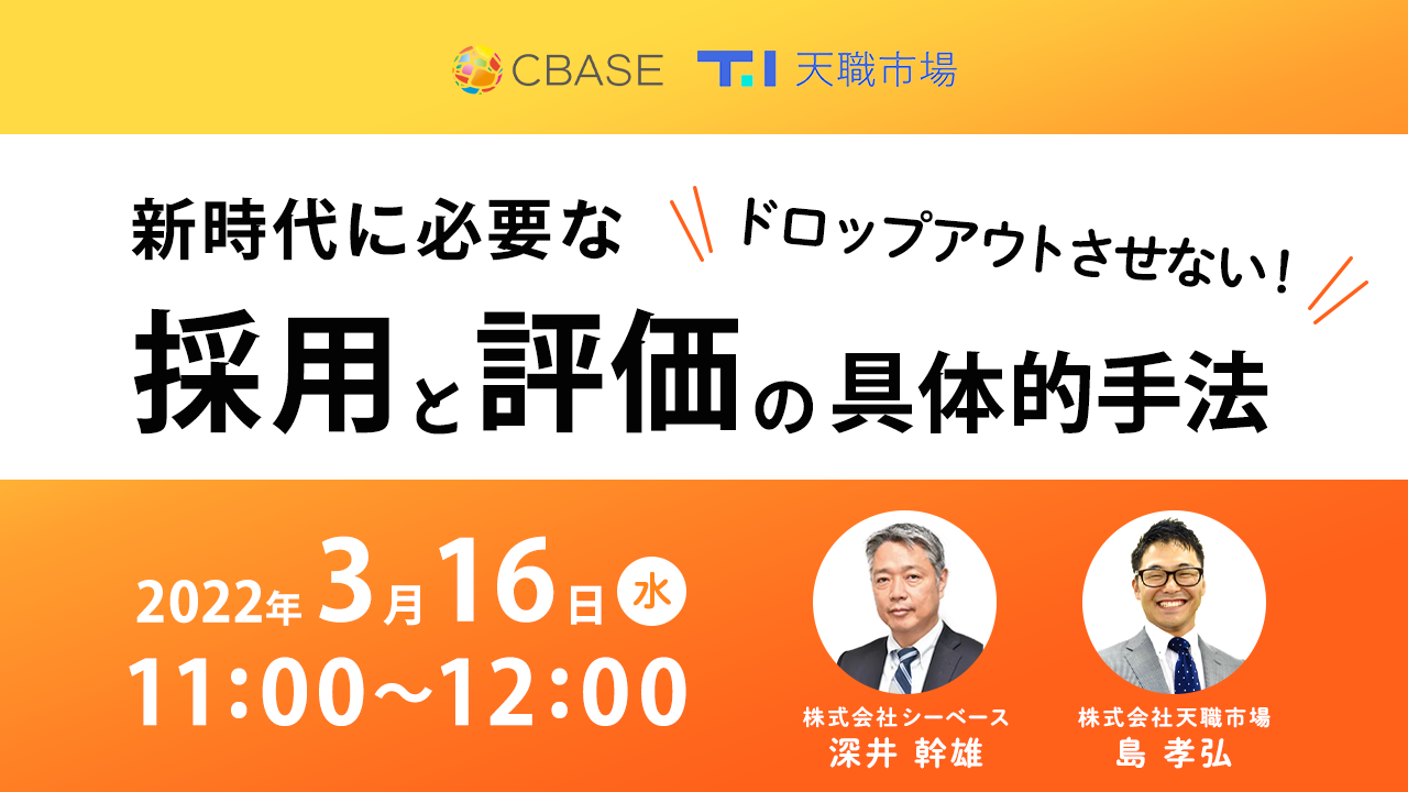 企業の採用活動を支援する株式会社天職市場(本社:東京都新宿区西新宿、代表取締役:森部 浩史)は、2022年3月16日(水)に社員採用担当者向けのセミナー『ドロップアウトさせない 新時代に必要な採用と評価の具体的手法セミナー』を開催いたします。