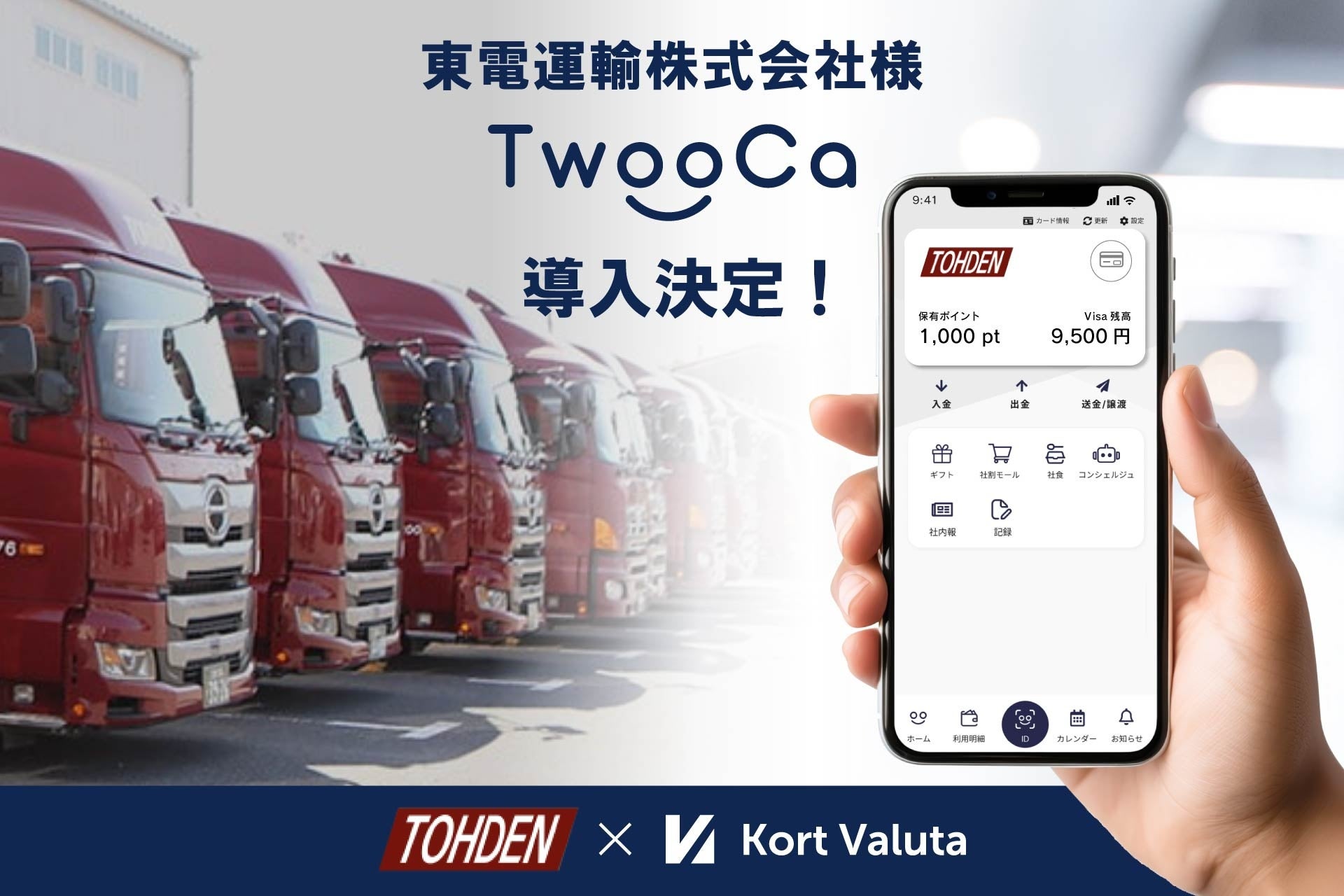 株式会社 Kort Valuta (本社:東京都渋谷区、代表取締役 柴田秀樹 以下、当社)は、東電運輸株式会社(本社:三重県四日市市、代表取締役 石井栄二 以下、東電運輸)が、当社のVisa決済機能付きデジタル社員証TwooCaを導入いたしましたことをお知らせいたします。