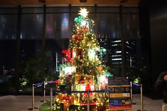 その一環として「働く今日も‘なんかいいね’」をコンセプトに、オフィスでもイルミネーションを楽しんでいただくべく、なんばスカイオ10階とパークスタワー1階・2階のオフィスロビーには、クリスマスツリーやオブジェを設置します。装飾には「ロスフラワー®」を使用し、後日オフィステナントの従業員様約200名に抽選でプレゼントを予定。