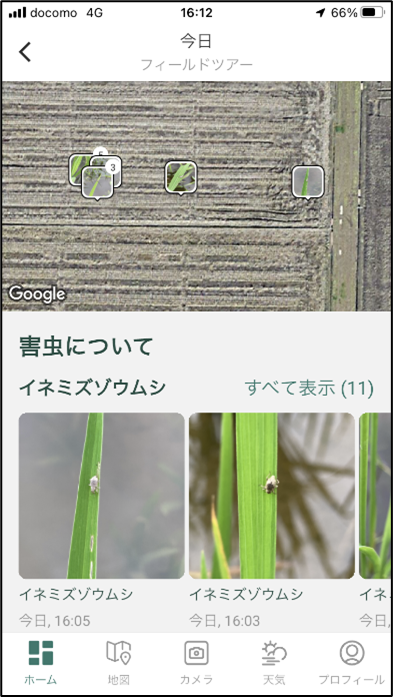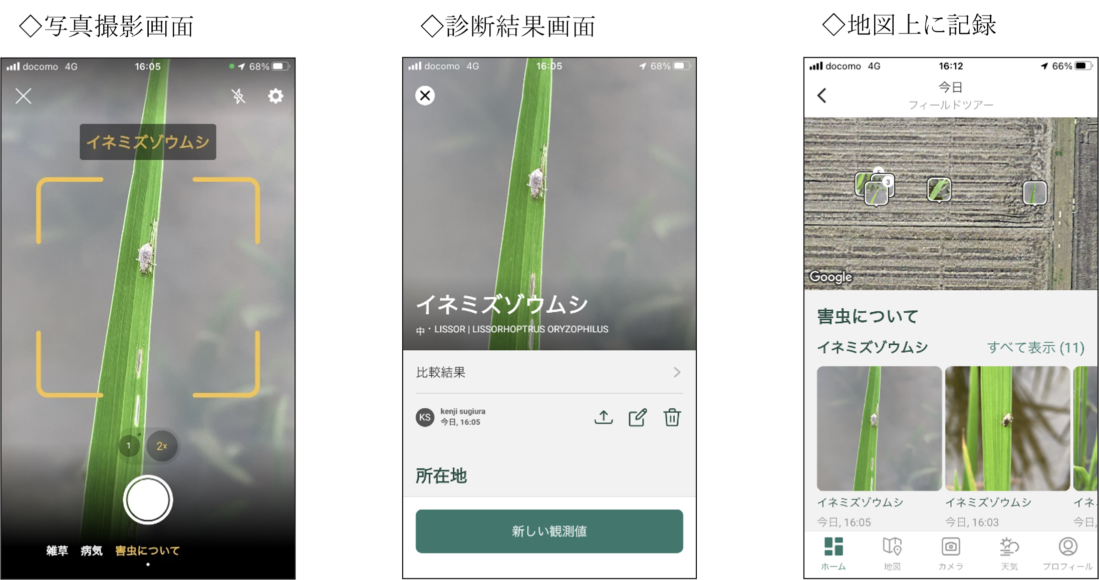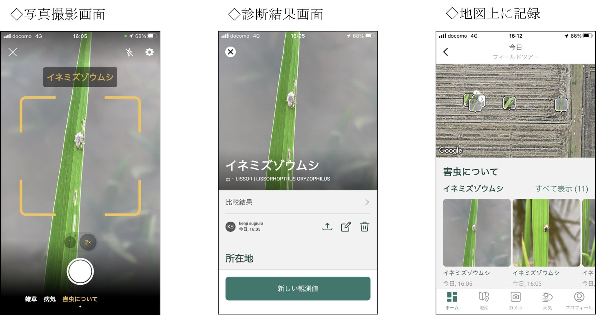「MagicScout(マジックスカウト)」は、AI技術により水田雑草の60%程度に相当する27種類の診断が可能なスマートフォン向けアプリです。対応OSは、iOSとAndroidで、App Store(iOS)およびGoogle Play(Android)から無料でダウンロードができます。今回の機能追加により、水田の害虫・病害の写真を撮影して診断結果を確認し、その特徴などを詳細情報ページで確認することができるようになりました。診断結果は撮影場所の位置情報とともに地図に記録されます。日本全国の水稲の害虫・病害をカバーしており、事前にアプリのカメラ設定でAIモデルをダウンロードしておけば、インターネットへの接続がない環境下でも診断が可能で通信環境にかかわらず利用できます。今後水稲だけでなくさまざまな作物へも拡大し、さらなる利便性の向上と雑草や病害虫の診断を通じてより効率的な作物保護をサポートしていく予定です。