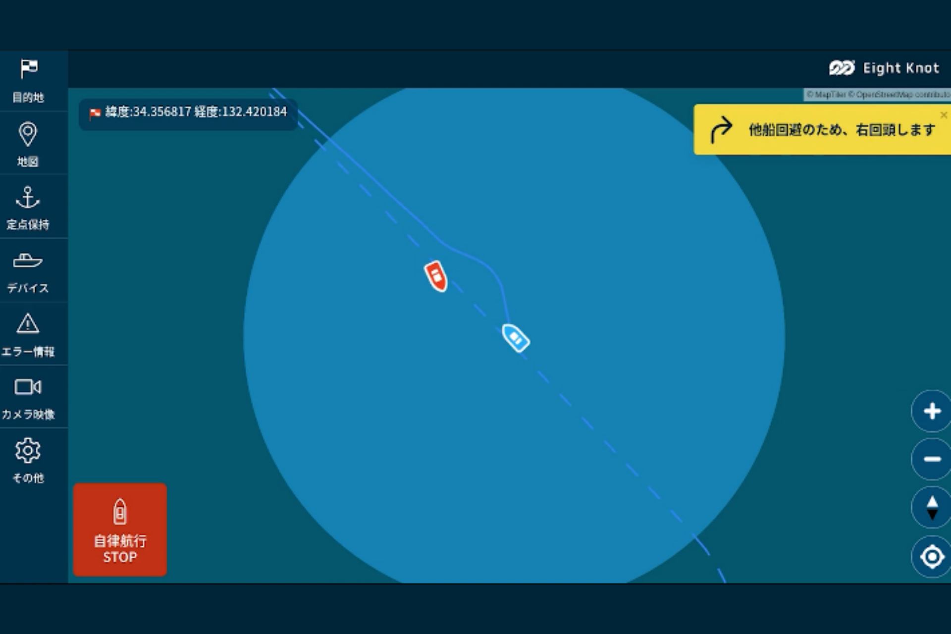 エイトノットは小型船舶向け自律航行技術開発を中心に「海のDX」と「船舶のロボット化」を推進する船の自動運転技術スタートアップです。自律航行技術の実用化を通じて、船舶乗組員のサポートや船舶安全性の向上、運用コストの最適化を実現し、より身近なものにすることを目指します。高性能センサーやカメラで周辺状況を認識してAIが自動で最適な航路を選ぶ、自律航行プラットフォーム『エイトノットAI CAPTAIN』は、国内での実装を着実に増やしており、2027年には北米市場への進出を予定しています。