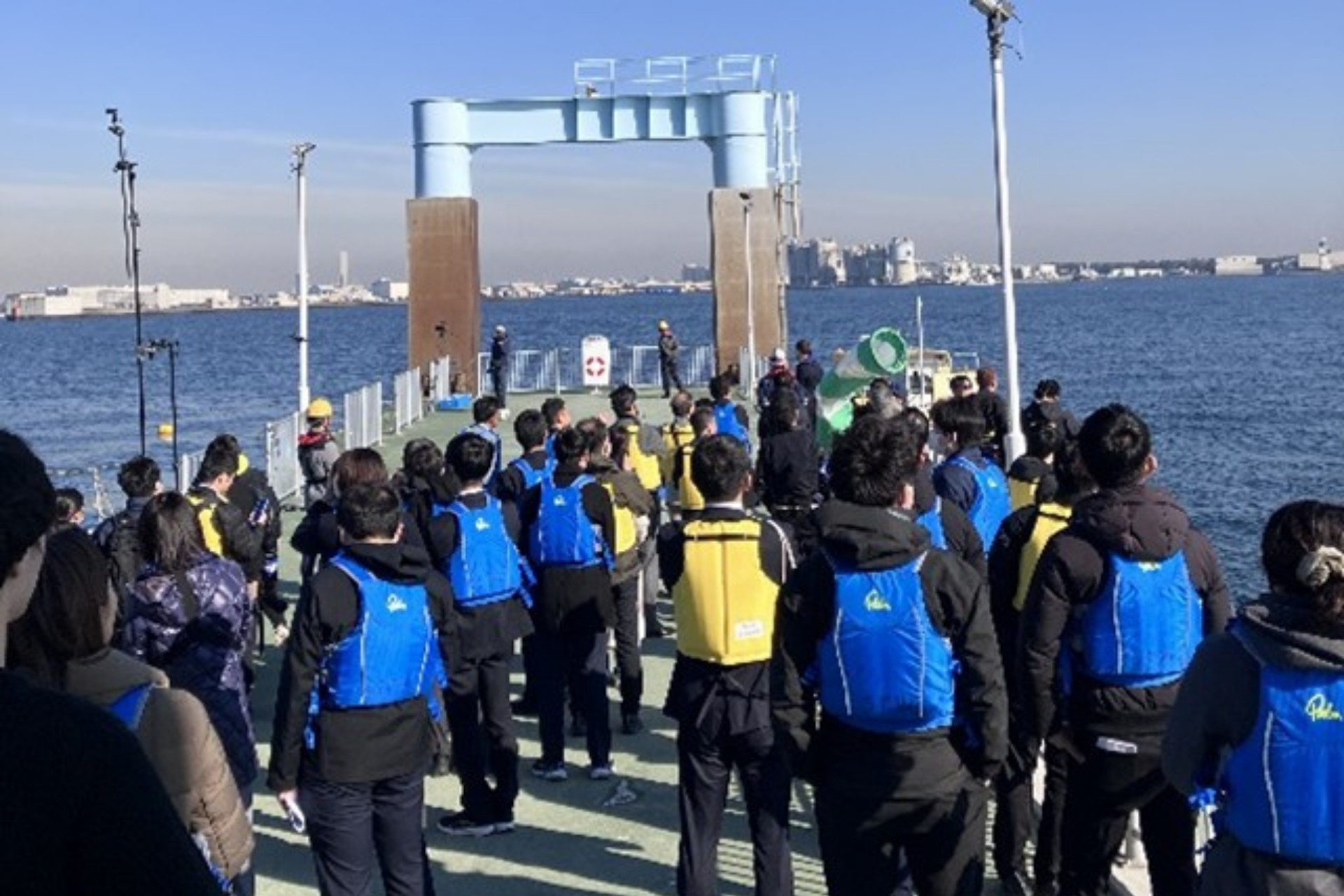 2025年12月には、本事業において2度目となる実証実験を行い、外海に設置した浮体式ポートでの空飛ぶクルマを想定したヘリコプターによる離着陸実証や自律航行船※3による運航実証に成功したほか、ターミナル施設でのオペレーションの検証や各モビリティの相互連携を支援するシームレスコネクティングシステム※4の動作検証、複数台の自律ロボットによる運行実証などを実施いたしました。