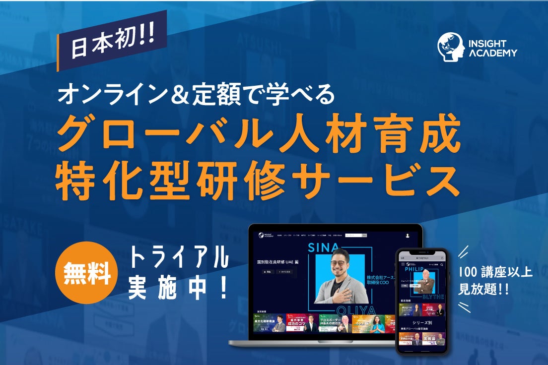 海外駐在員/駐在員候補の育成に課題を持つ⼈事部・海外事業部の⽅に無料トライアルでお試し頂き、貴社のグローバル⼈材育成研修としてINSIGHT ACADEMYをご検討頂ければと思います。