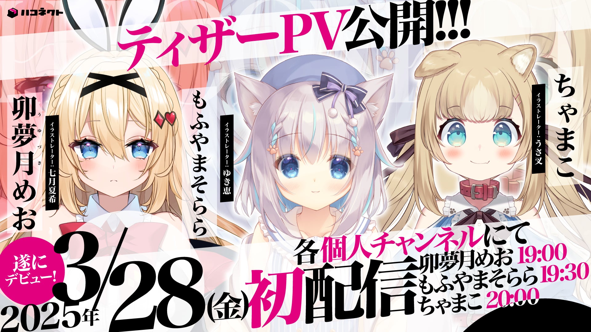 株式会社アナログ(所在地:東京都千代田区)が運営する、VTuber事務所「ハコネクト」では、3月28日(金)にデビューする新メンバーの初配信スケジュールとティザーPVを公開いたしました。
