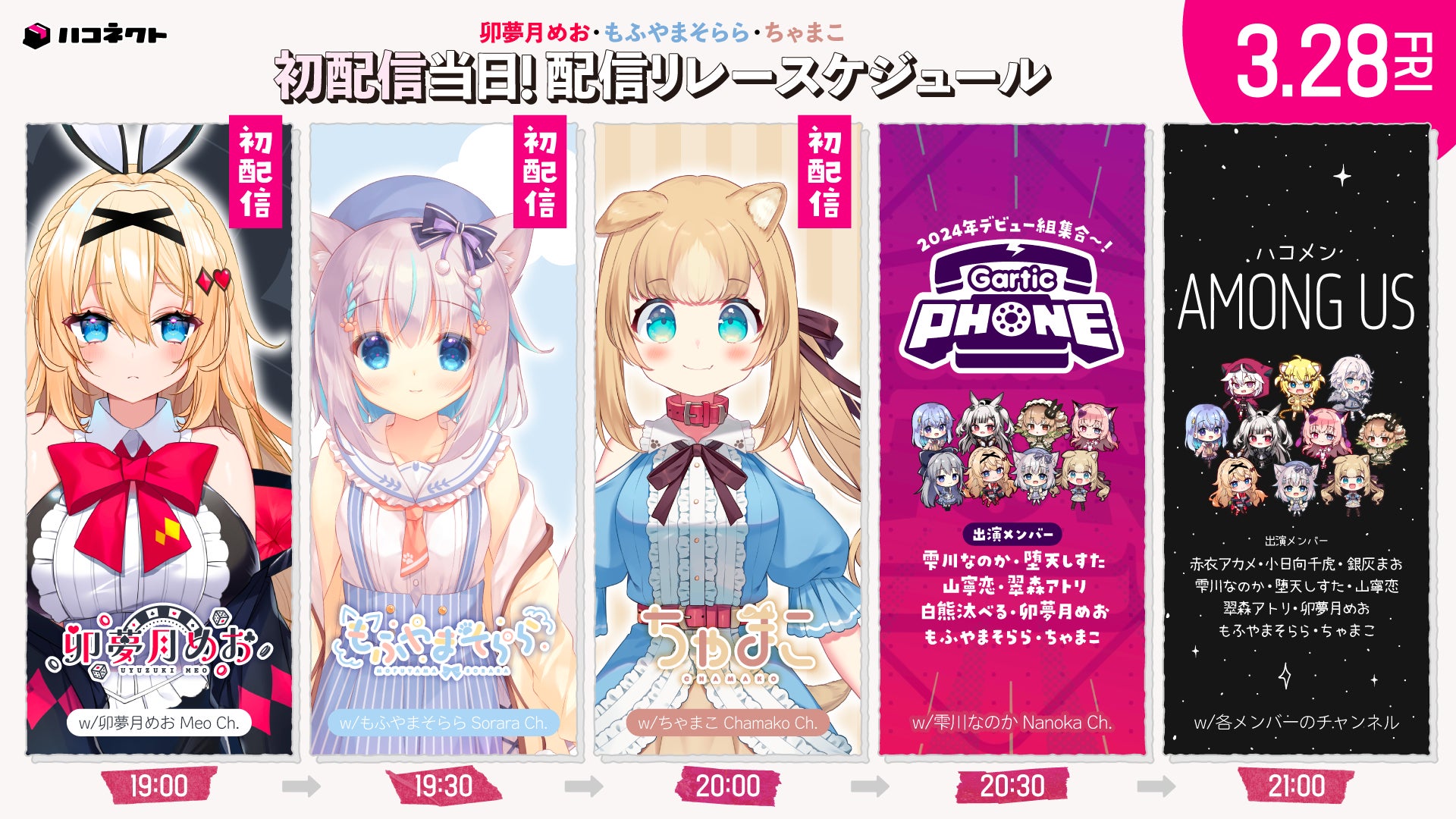 新メンバー3人の初配信日3月28日(金)のスケジュールも決定いたしました!