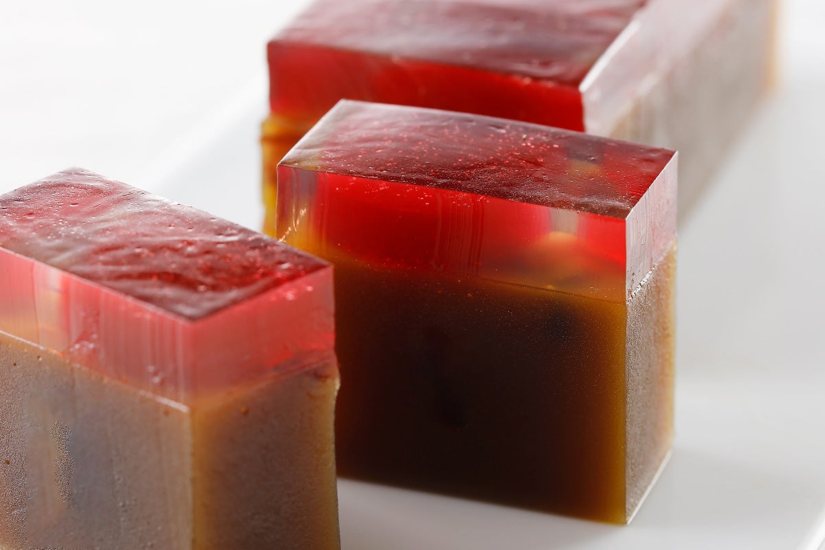 風味豊かな白餡とアール・グレイの羊羹、苺とラズベリーのパート・ド・フリュイにベルガモットの酸味が引き立つ錦玉羹の2層で構成しています。