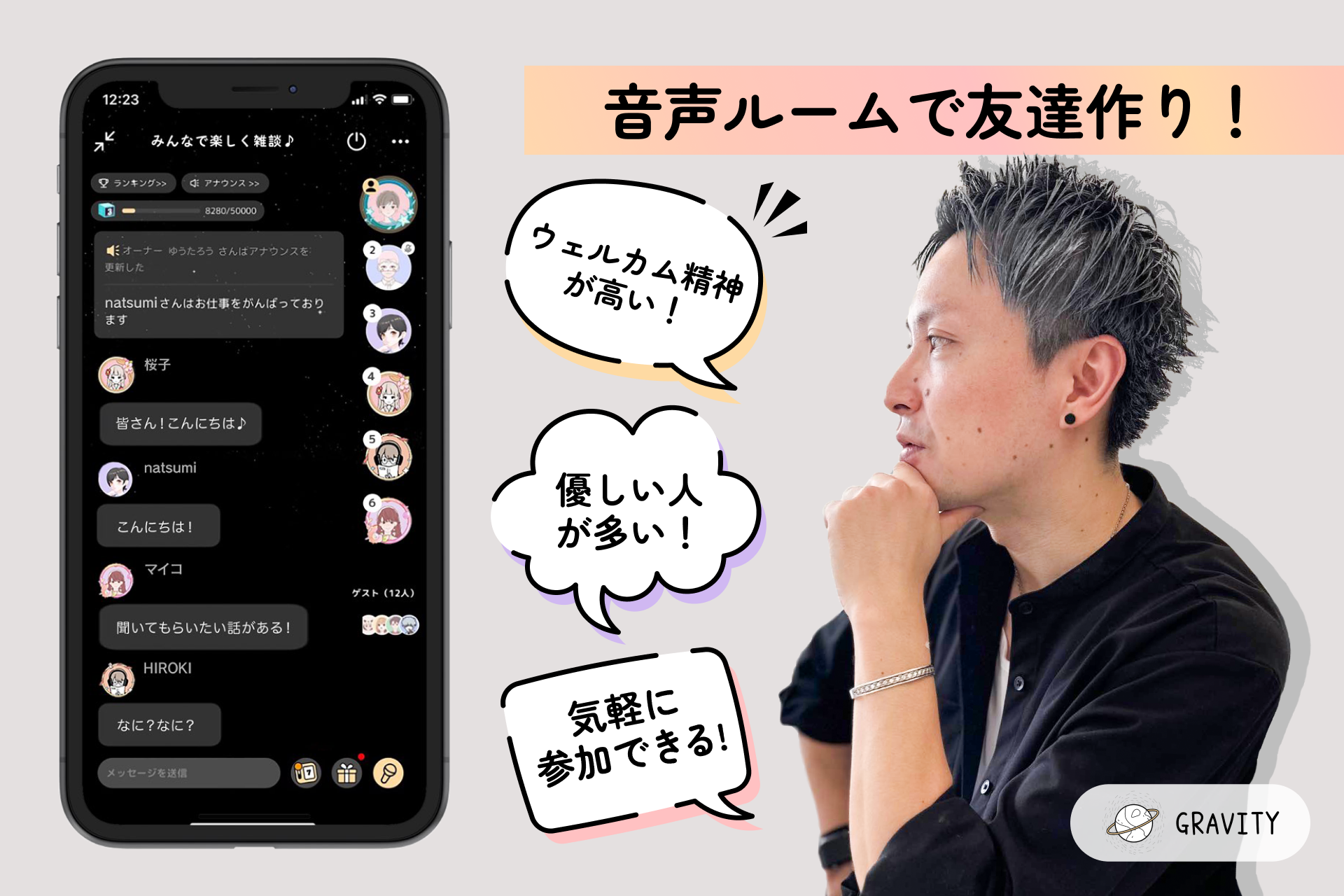 SNS「GRAVITY」、新機能「抽選機」をリリース。友達を増やすコツは音声ルーム巡り!?ユーザーインタビューからGRAVITYの魅力に迫る。