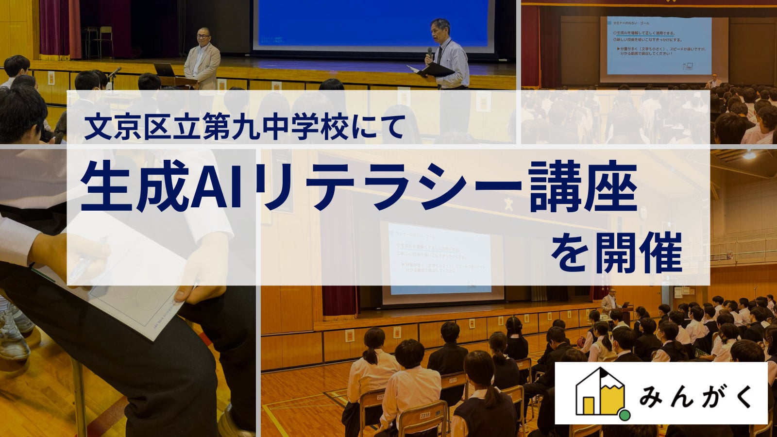 みんがく、文京区立第九中学校にて、全校生徒・教職員に向けて「生成AIリテラシー講座」を開催