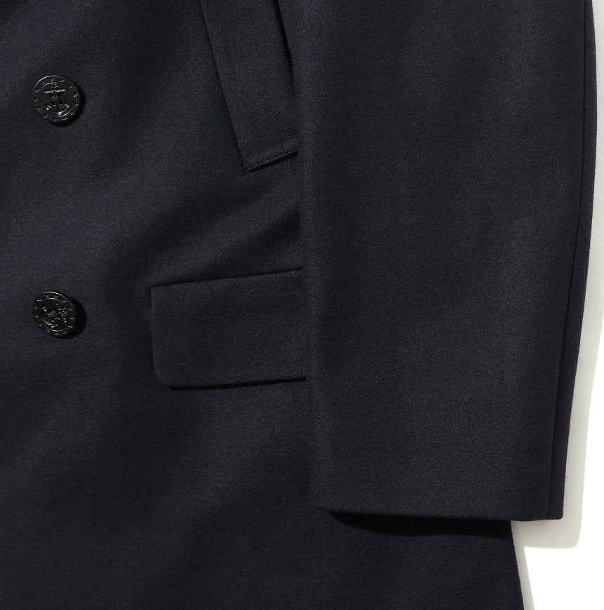 伝統的なPコートのディティールを踏襲しながらも、わずかにドロップさせたショルダーラインでトレンド感のあるややオーバーサイズシルエットに。