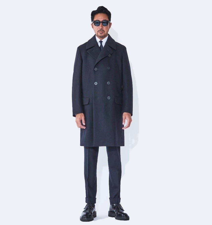 重厚感があり窮屈なイメージのあるPコートの概念を覆す、重厚感と軽さ、ストレッチの効いた快適性を備えたPコートです。
