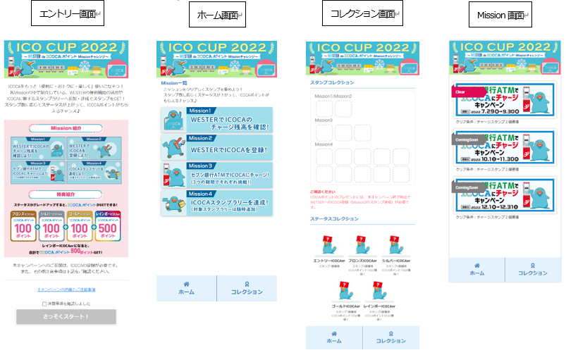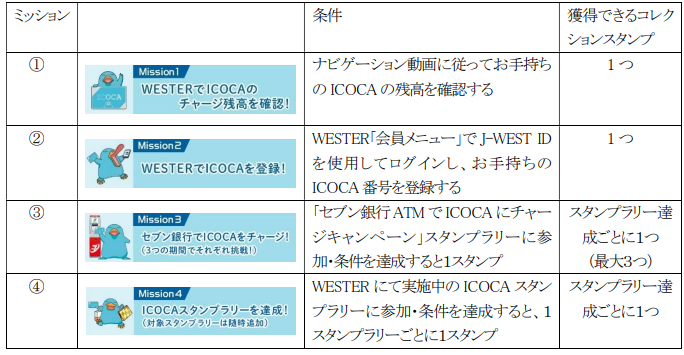 ※Mission2でご登録いただいたICOCAにポイント付与するため、ICOCAポイントのプレゼントには、本キャンペーン終了時点でWETSERへのICOCA登録(Mission2のスタンプ達成)が必要です。