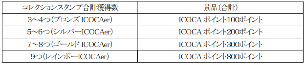 ・集めたコレクションスタンプに応じてユーザーステータスが上がり、ステータスに応じてICOCAポイントをプレゼント