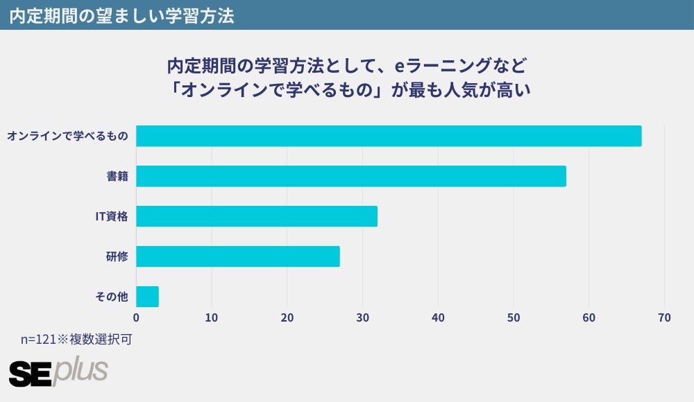 内定期間の望ましい学習内容や方法など、新人ITエンジニアに対し、内定期間中の学習に関するアンケート調査を実施