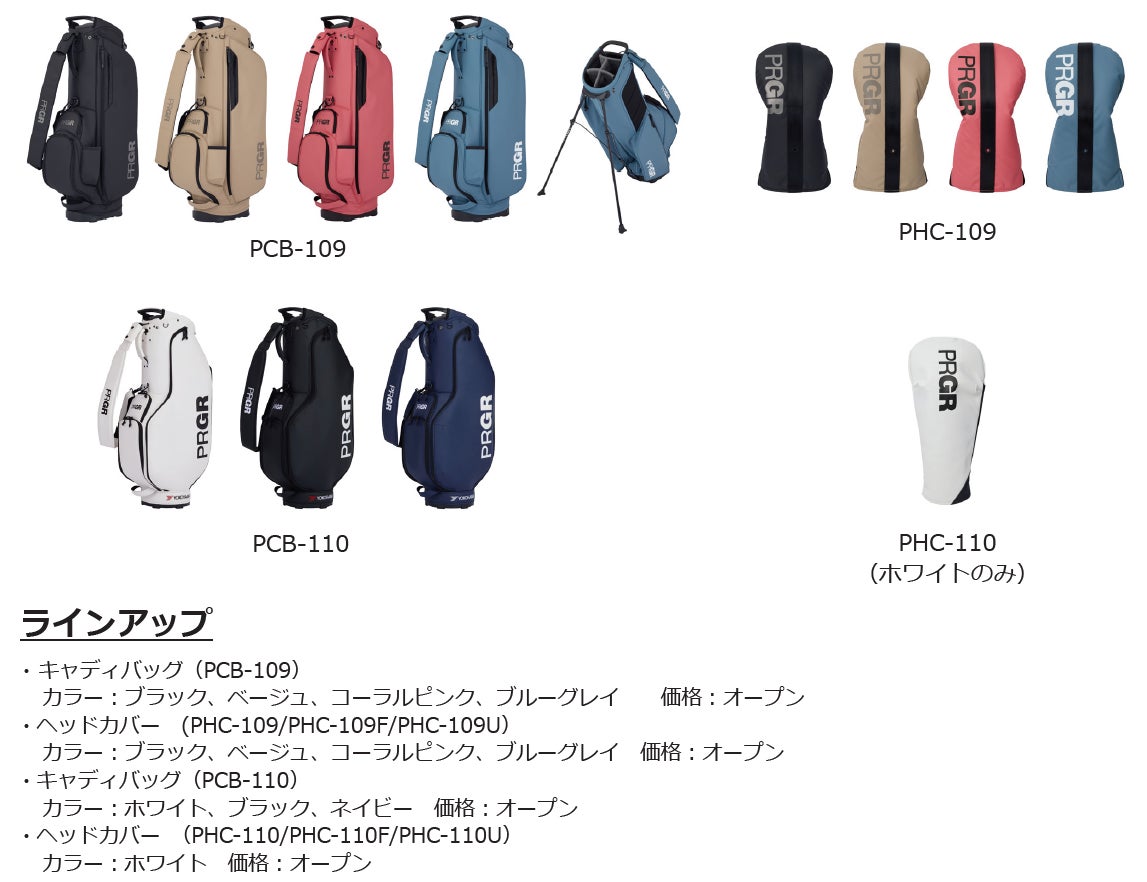 PRGR カジュアルなキャディバッグとヘッドカバーを新発売