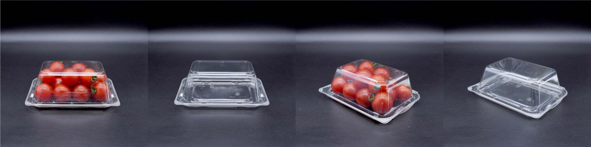 ・リブのないスッキリとした蓋で、デザイン性の高さは勿論の事、トマトなどを自動包装した際に内容物が飛び出しにくい深さに設定。