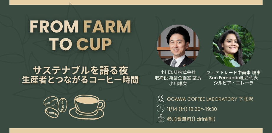 本企画展のコラボレーション企画として、11月14日(金)に、OGAWA COFFEE LABORATORY 下北沢にてトークイベント「サステナブルを語る夜 生産者とつながるコーヒー時間」を開催し、コーヒーを通じてサステナブルな未来について語り合います。