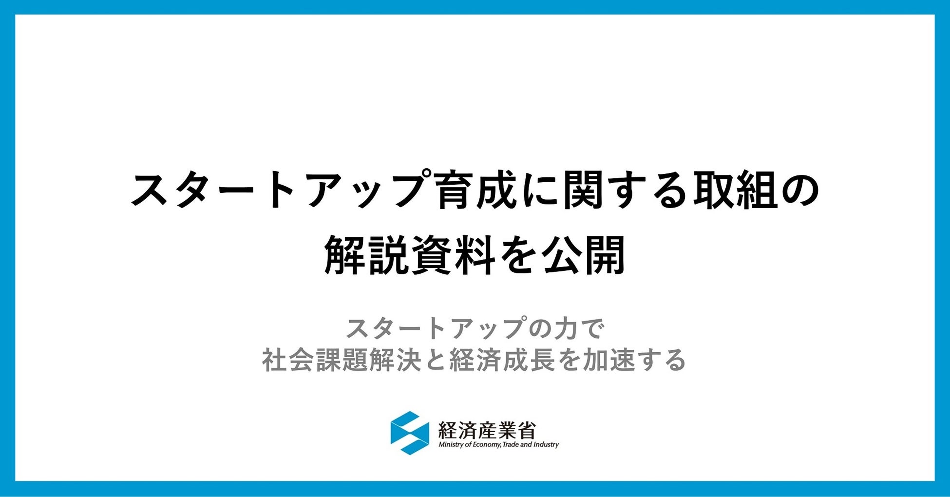 経済産業省は、スタートアップ育成に関する取組の解説資料「スタートアップ育成に向けた政府の取組~スタートアップの力で社会課題解決と経済成長を加速する」を公開しました。