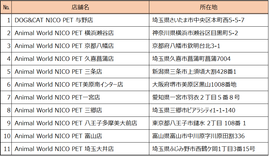 NICO PET埼玉大井店の出店により、全国のNICO PETは11店舗になりました。