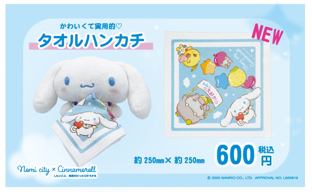 シナモロール 能美市オリジナルグッズに「タオルハンカチ」も追加!