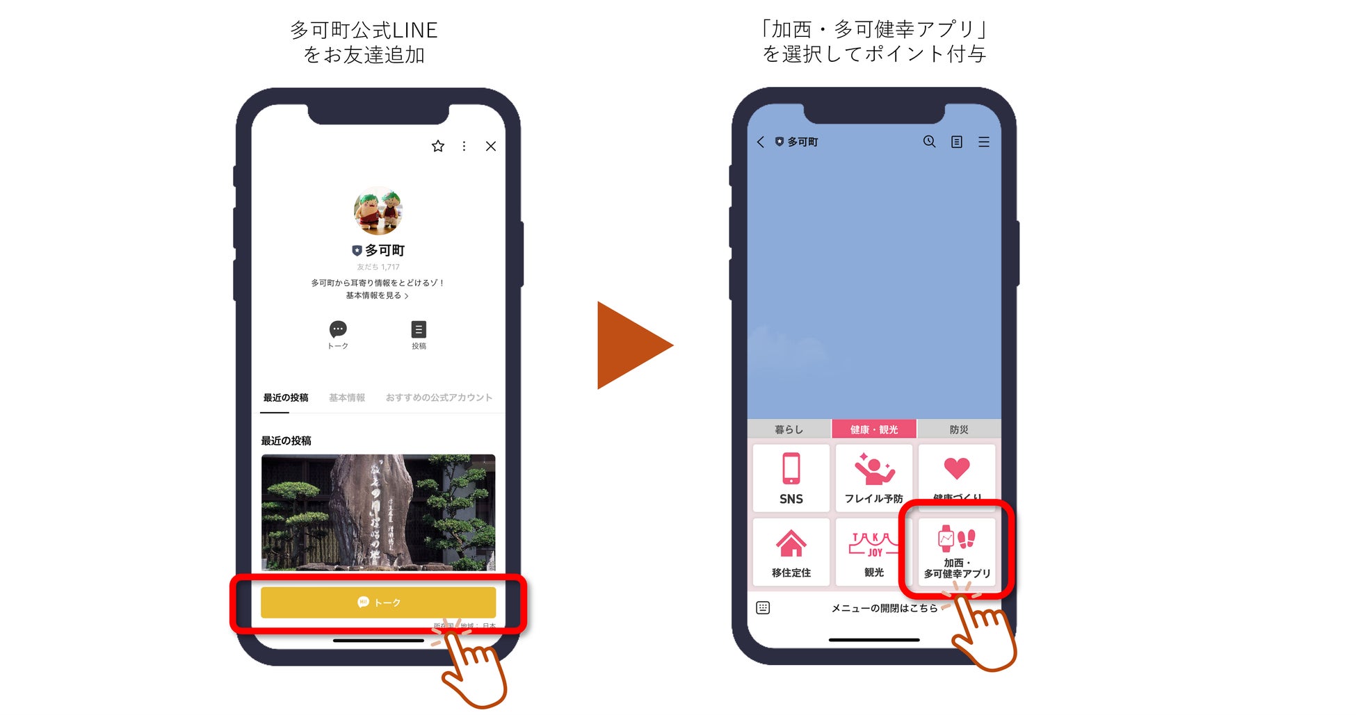 【多可町公式LINEから「加西・多可健幸アプリ」を開く機能が追加】