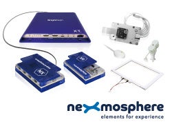 WiFiモジュールやmicroSDカードのほか、Nexmosphere社製各種インタラクティブセンサーなどをラインナップしています。