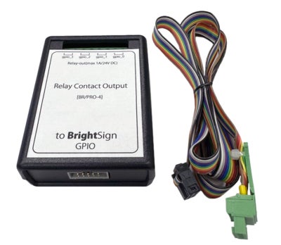 BrightSign専用GPIO接点出力ユニット『GPIO接点出力ユニット(型番:BR/PRO-4)』を発売しました。BrightSignのGPIO出力を無電圧接点入力の機器に対応した4系統のGPIO出力として安全に利用できる信号へ変換します。