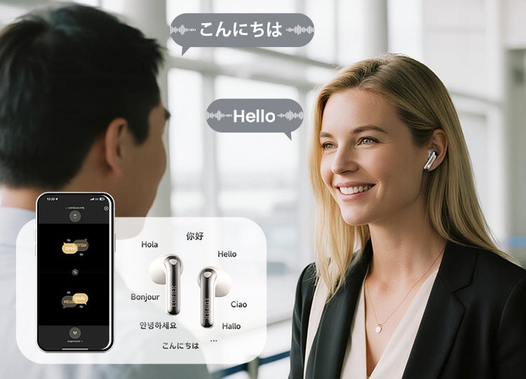 「EvoBuds Pro」はAIによる多言語対応の正確でタイムラグの少ない翻訳を提供します。