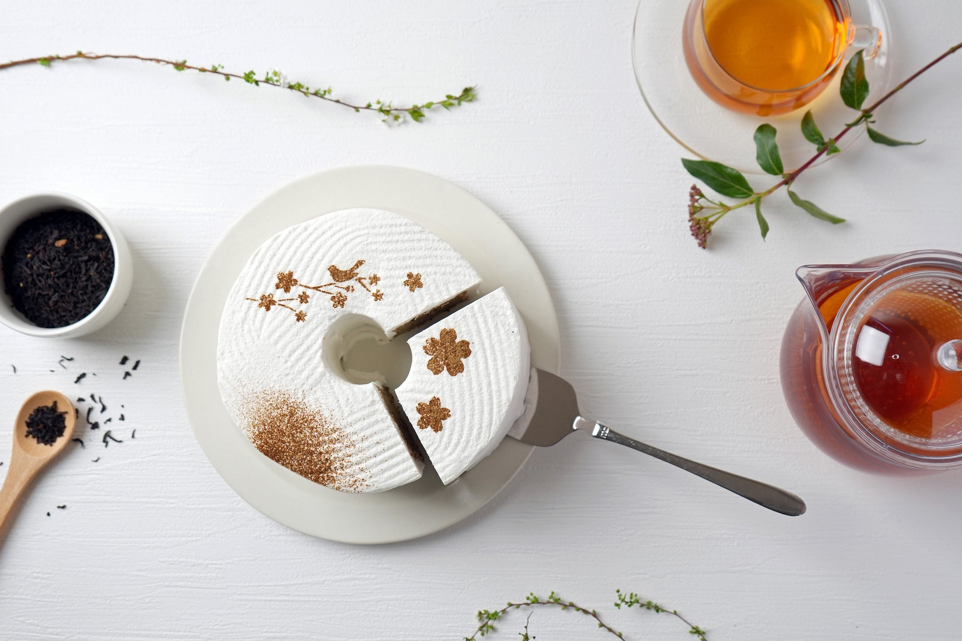 春の芽吹きをイメージしたデザインの紅茶シフォンケーキで、ひと足早い春の訪れを感じてみませんか?