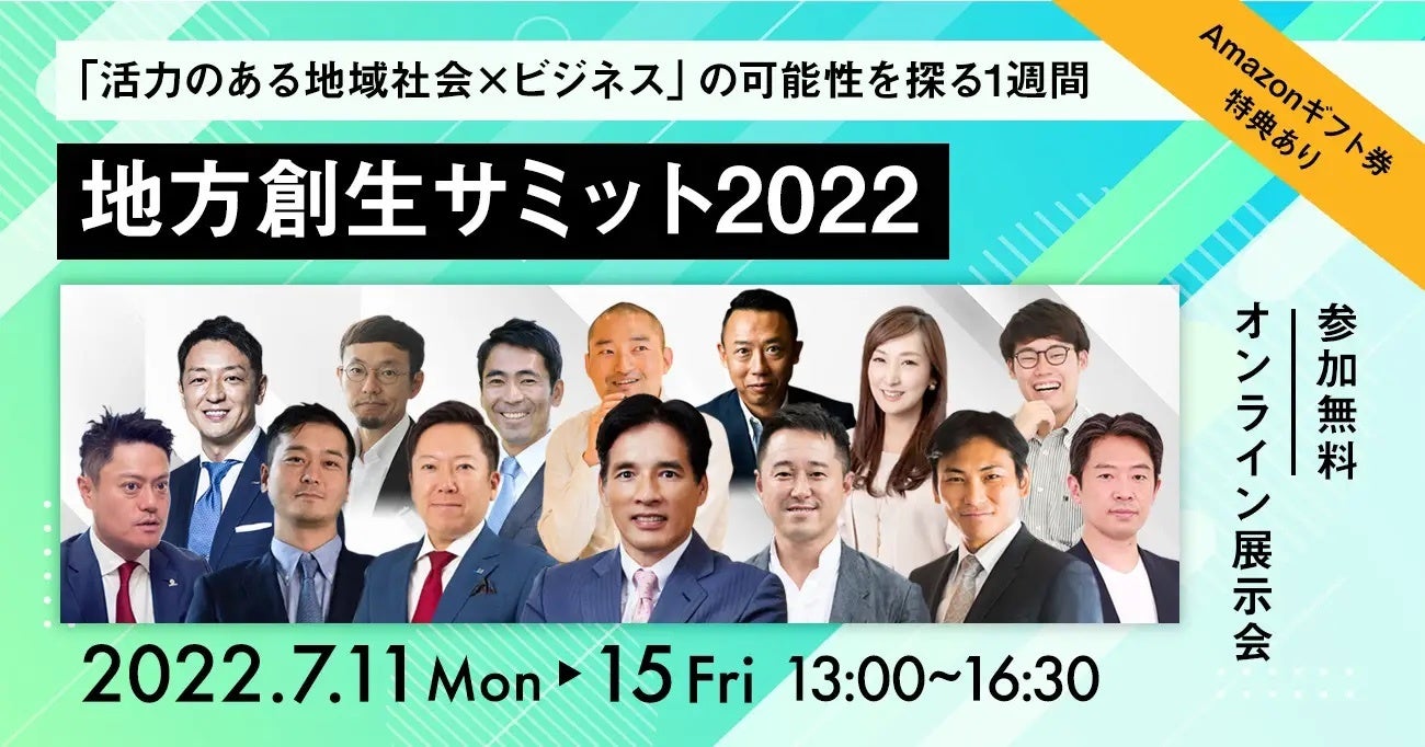 中小企業支援(ブランディング、WEB マーケティング、SDGs支援)事業を行う株式会社中小企業のチカラ(本社:東京都渋谷区、代表取締役社長:山下 佳介、以下「中小企業のチカラ」)( https://nippon-smes-project.com/ )が運営する『中小企業からニッポンを元気にプロジェクト』は、2022年7月11日(月)~15日(金)に開催されるオンライン展示会「地方創生サミット2022」に出展致します。