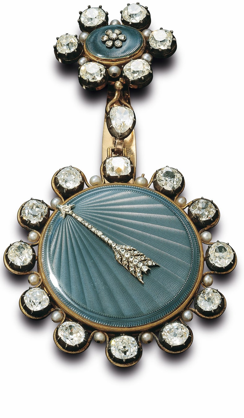 電気や夜光針のない時代、このような時計はケース周囲に配置されたダイヤモンドの時刻マーカーと針の位置関係を触覚で感知することで、暗闇での時刻確認を可能にしました。L.Leroyはこの独創的なコンセプトを現代に再解釈しています。