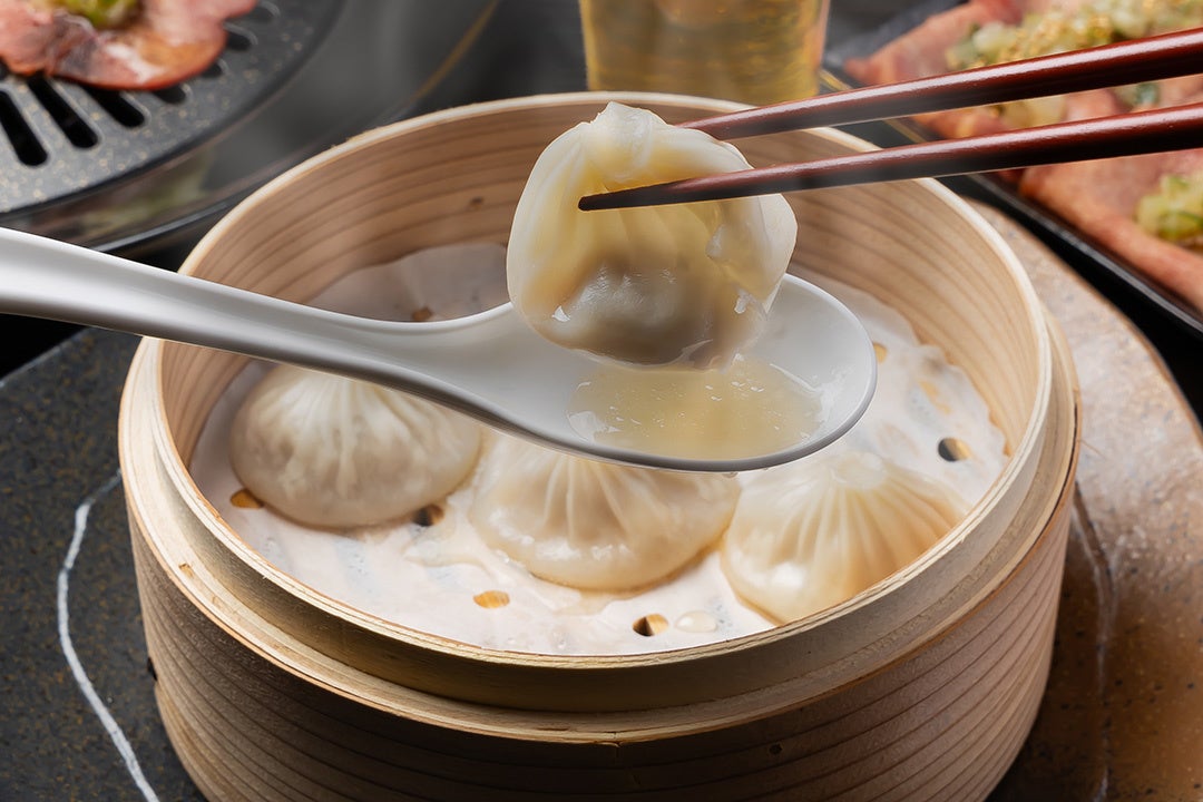 【餃子の宮でんでん】が愛する埼玉県産の秩父味噌で羽根にまで味を付けた「小江戸黒豚こく味羽根付き餃子」のほか、変わりダネでは【WORLD DINER】の何度も研究を重ねた繊細な薄い皮に包まれた極上スープと牛タンの食感が魅惑を放つ「黒胡椒の牛タン小籠包」。アジアンテイストがお好きな方は「トムヤムクン小籠包」をどうぞ。【肉処 天穂】が国内トップクラスのA5ランク和牛である佐賀牛を使用した「佐賀牛餃子」と、すき焼きの割下風スープといただく「すき焼き風佐賀牛餃子」がスタンバイ。