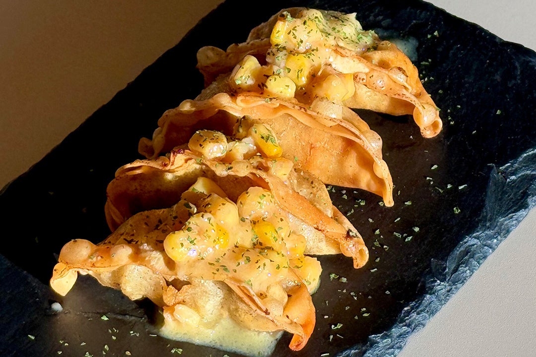 ソースや皮などで彩りや香りをプラスした『メイクアップ餃子』が今年は注目。北海道十勝産のとうもろこしを使った【餃子とワイン 果皮と餡】の「バター醤油の揚げトウモロコシ餃子」は、素材と相性抜群の香ばしいバター醤油にトウモロコシの粒を加えたポップな揚げ餃子。昨年も好評だった「旨味溢れるコリコリ牛タン餃子」も登場。さらに初出店となる【鮨大和】の「札幌味噌バターのアサリ餃子」は、魚介類の美味しいを知り尽くした鮨屋が考案した海と大地のコラボレーション餃子に札幌味噌タレとバターをかけた変わり種餃子。味噌スープを注いだ「札幌味噌バタースープ餃子」で身体もポカポカに。 そして、一滴残さず飲み干したくなる昆布のスッキリとした出汁に梅生姜をかわいくトッピングしたホッとする一杯は【肉玉そば越智×浅草開化楼】の「ビストロ昆布と梅生姜のスープ餃子」。埼玉の餃子専門店【餃子の宮でんでん】のぷるんとした皮が特徴の丸餃子にチーズソースを絡めた「チーズのせ爆汁丸餃子」は、口の中いっぱいにアツアツ肉汁が溢れ出す。