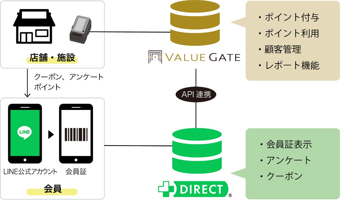 クラブネッツはLINEヤフー Partner Programの3部門で認定を受け、そのうち2部門で最上位の認定を受けています。プロダクト提供だけではなく、現場への徹底的な浸透を図る継続的なCS業務の提供体制が当社の特長となっています。自社開発サービスである+DIRECTは、クライアントが利用しているCRMシステムとLINE公式アカウントを連携することができ、既存のマーケティングデータを活かしたSNS販促が可能となっており、業種・業界問わずご利用いただいております。 トリニティは、商業施設やホテル、小売店などを対象に、ポイント管理システム「VALUE GATE」を提供し、顧客管理や販促施策を通じてクライアントの売上向上を支援してきました。 「+DIRECT」と「VALUE GATE」が連携することで、LINE公式アカウント上でポイントカードが表示可能となり、顧客管理やポイント付与、来店促進施策がシームレスに実現します。この連携により、企業は顧客とのエンゲージメントを強化し、購買促進や来店頻度の向上をより戦略的に図ることが可能になります。