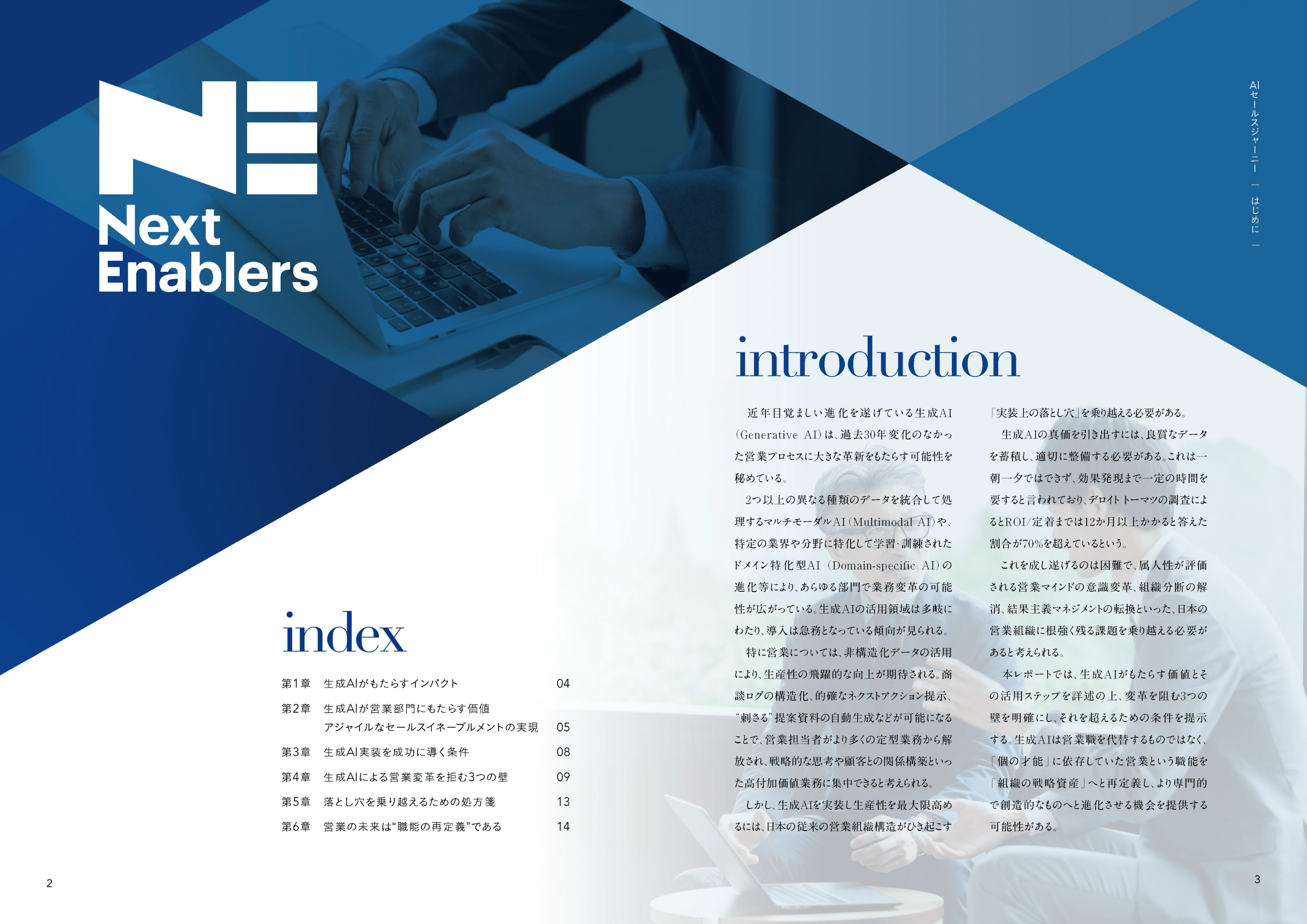 本レポートでは、生成AIを前提とした新しい営業のあり方を描き、その実装にあたって直面しやすい課題と乗り越えるための処方箋が整理されています。