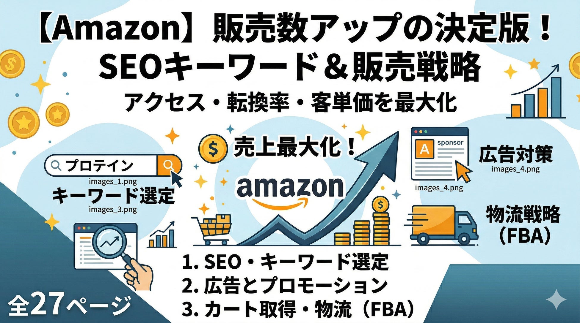 本レポートでは、売上の公式「アクセス数×転換率×客単価」を軸に、Amazonで勝つためのSEO対策、最新の広告活用術、そしてカート取得率を左右する物流戦略までを論理的な実戦ガイドとしてまとめました。