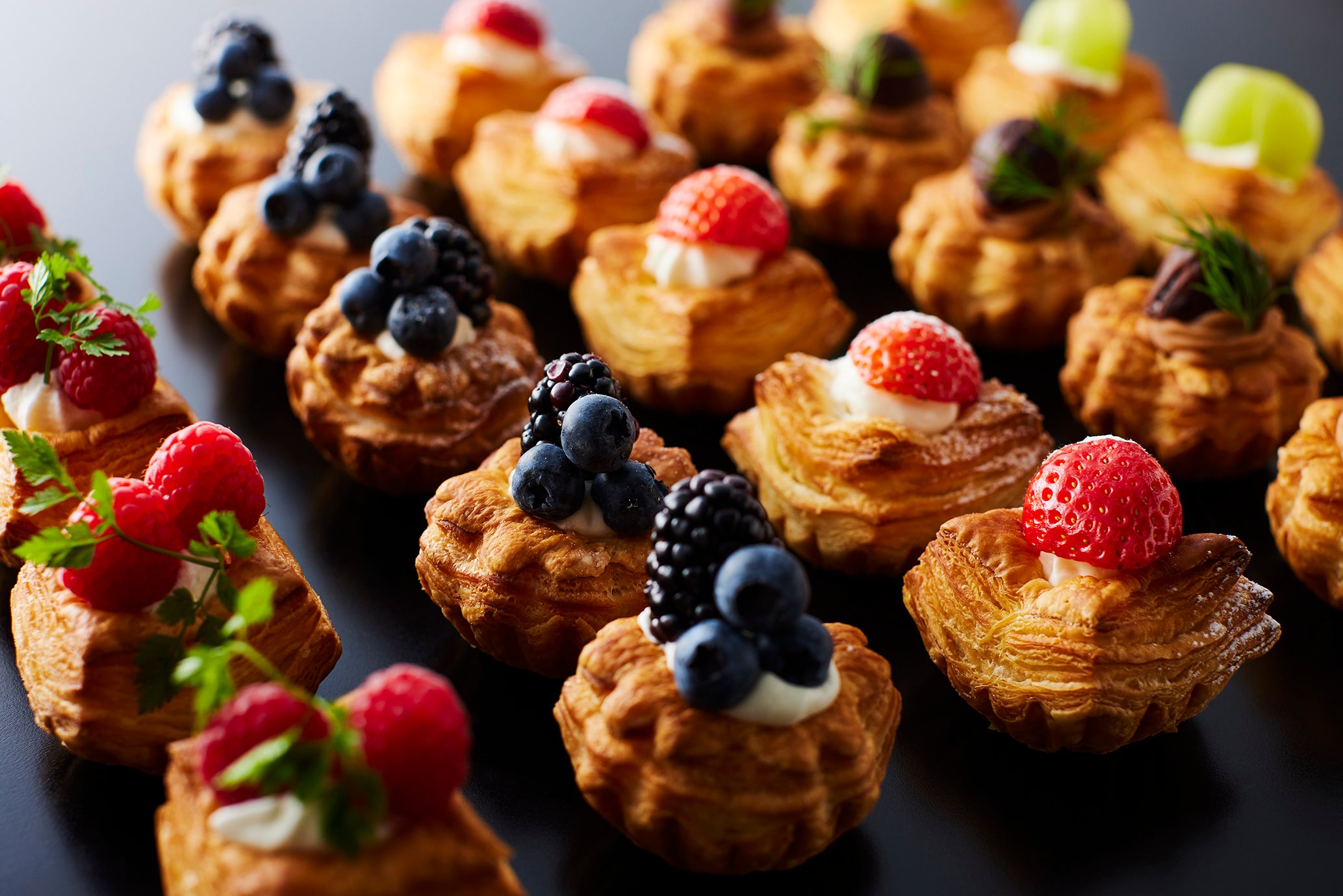 ホテル内ベーカリーで焼き上げたホテルメイドのデニッシュはサクサクの食感が絶品です。季節のフルーツを添えてご提供いたします。その他、数種類のホテルメイドのブレッドをご用意し、お料理との組み合わせやオリジナルのキャラメル・サレやフルーツのコンフィチュールと一緒にお楽しみください。また、お客様の声から生まれた人気の低糖質スイーツもラインナップ。