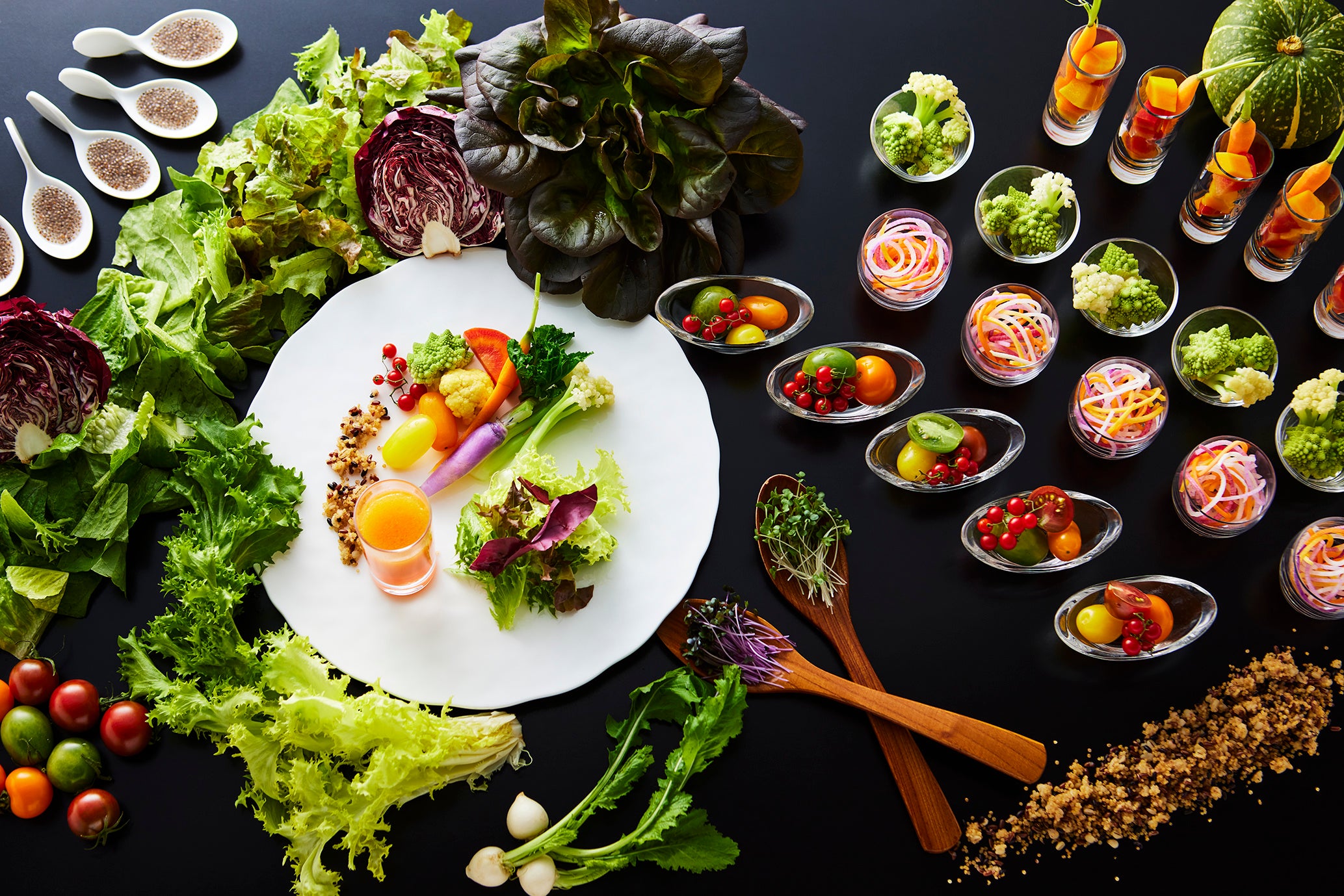 多彩なメニューをお好みに合わせてカスタマイズをして召し上がっていただくのもおすすめです。サーモンなどお好きな具材をお選びいただき、パン・ド・カンパーニュに盛り付けるオープンサンドや、12種類以上の彩り豊かな野菜に、自家製ドレッシング、キヌアやチアシードなどのスーパーフード、アボカドオイルやエゴマオイルなどのトッピングを揃えた彩り菜園サラダをご用意。豊富な食材を自由にカスタマイズしてお楽しみください。