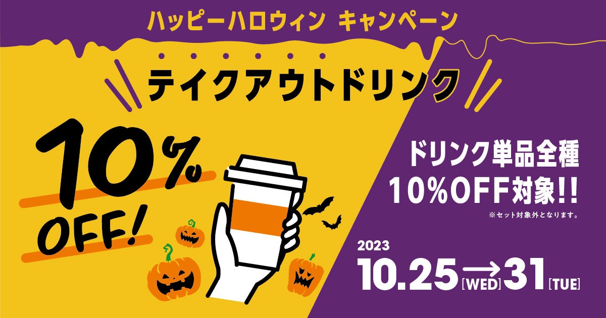 お持ち帰りでもサンマルクのハロウィンを楽しめる!テイクアウトドリンク単品が全種類10%OFFになる「ハッピーハロウィンキャンペーン」10/25(水)~10/31(火)の1週間限定で開催!