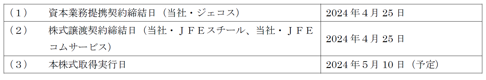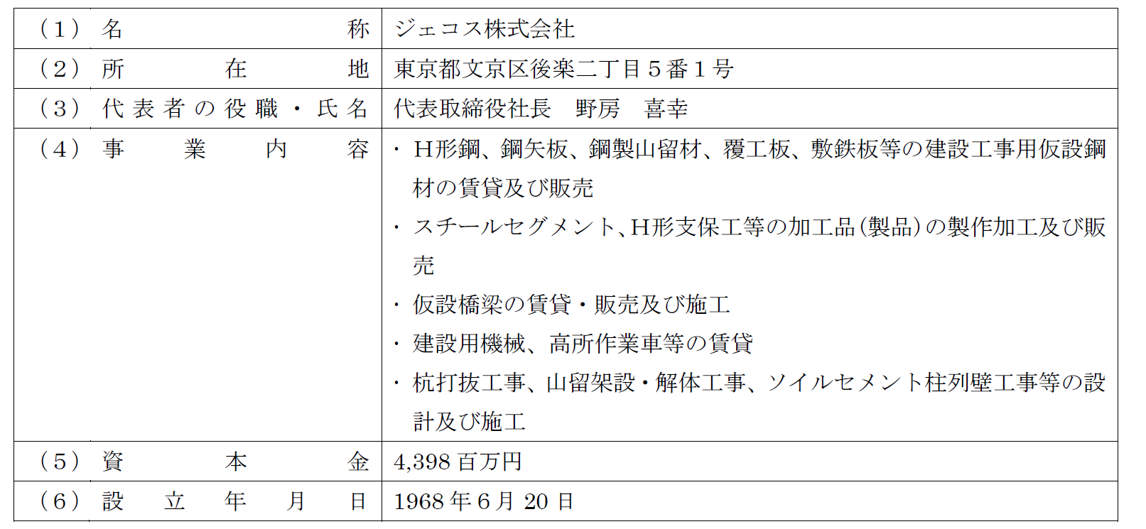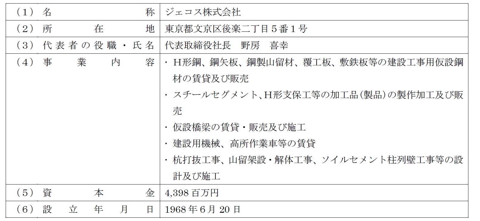 また、当社は本資本業務提携の円滑な実施を図るため、本株式取得の実行及びジェコス株主総会での承認を前提に、社外取締役1名をジェコスに派遣することを予定しております。
