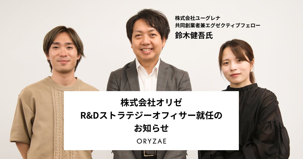 株式会社オリゼ R&Dストラテジーオフィサーにユーグレナ共同創業者兼エグゼクティブフェローの鈴木健吾氏が就任