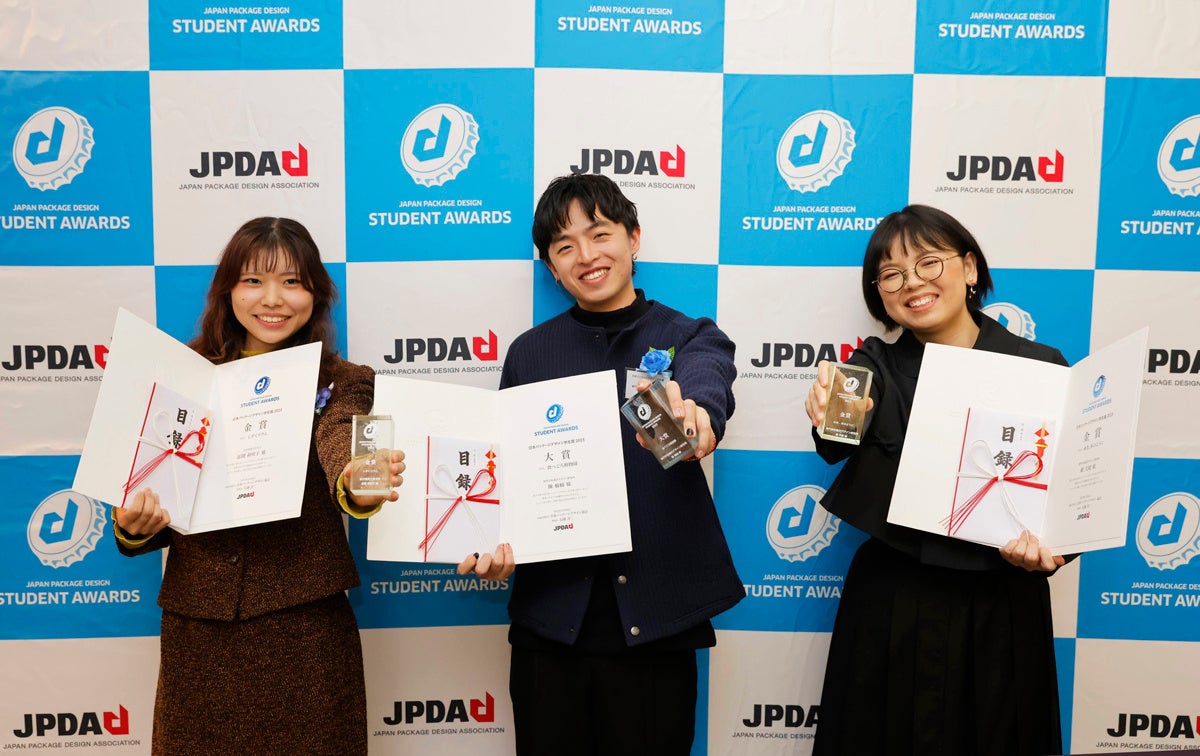公益社団法人日本パッケージデザイン協会(理事長:信藤 洋二、以下JPDA)は、2025年11月26日(水)、文京シビック小ホール(東京都文京区)において、日本パッケージデザイン学生賞2025贈賞式を開催、受賞した27名の学生に大賞・金賞・銀賞・銅賞・企業賞(フジシール財団賞、王子ホールディングス賞、大阪シーリング印刷賞、寿精版印刷賞、大商硝子賞、ツジカワ賞)・審査員特別賞を贈りました。※銀賞、ツジカワ賞はダブル受賞