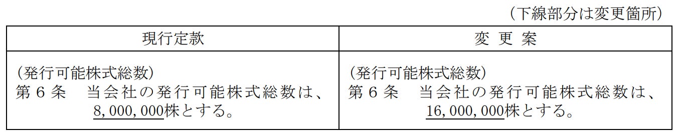 て、当社定款第6条に定める発行可能株式総数を変更いたします。